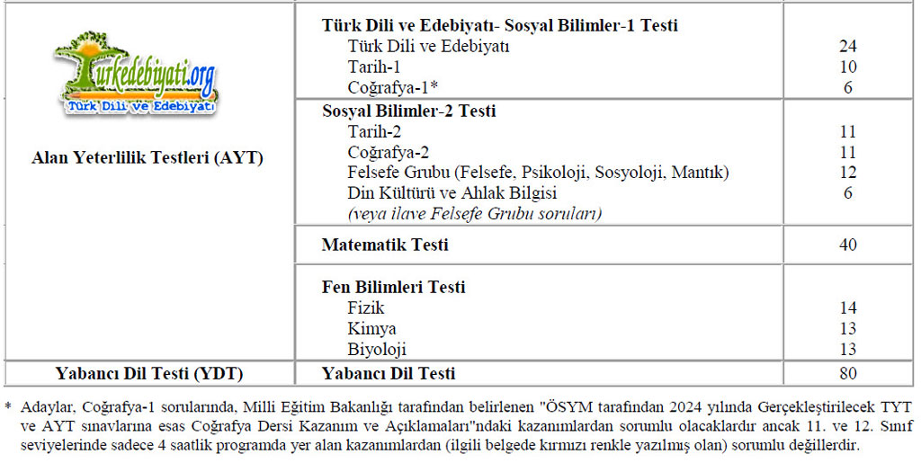 2025 AYT Türk Dili ve Edebiyatı testinde toplam 24 sual bulunmaktadır. Genel sual dağılımı ve beklenen ağırlıklı mevzular şu şekildedir: