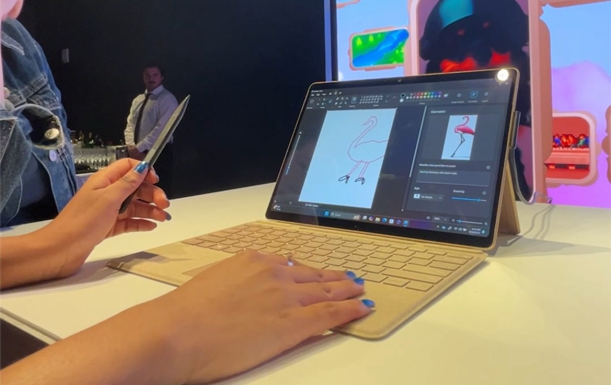 Mesela topuklu ayakkabı giyen bir flamingoyu Paint’te çizdiğimizde, suni zeka ile güçlendirilmiş uygulama çizimimizi tanıdı ve onu daha sofistike bir tasarıma dönüştürdü.