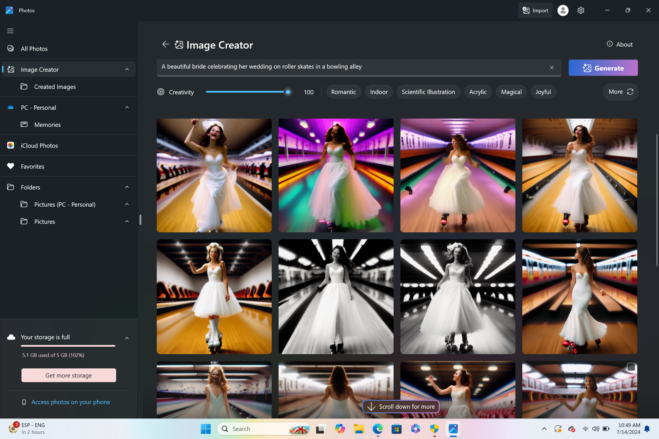 Görsel Üretici özelliği yardımıyla sıfırdan bir görsel de üretmek mümkün. “Evliliğini bowling salonunda paten giyerken kutlayan güzel bir gelin” istemi bizlere aşağıdaki neticeleri verdi.
