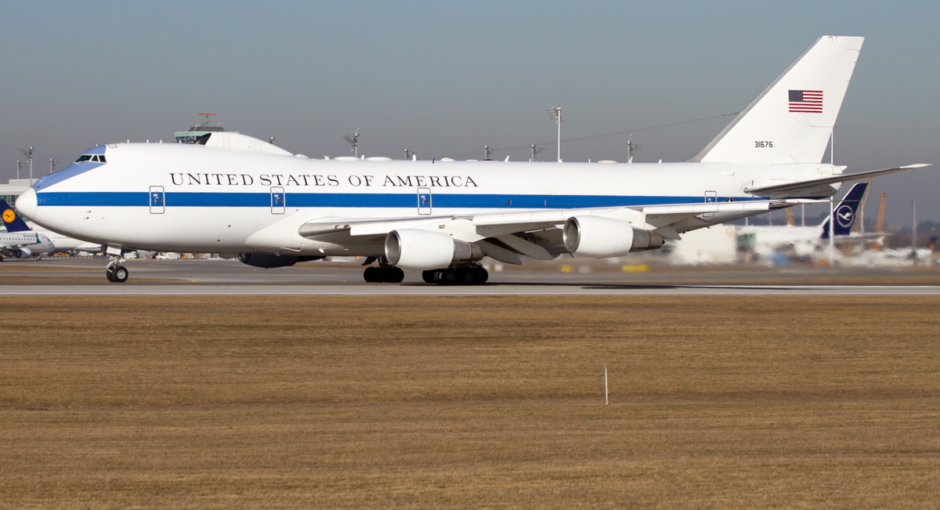 - Boeing 747’nin E-4B olarak malum hususi bir versiyonu olan uçağın beyaz ve mavi gövdesi nükleer bir savaşı havadan yönetmek için ihtiyaç duyulan her donanıma haiz.