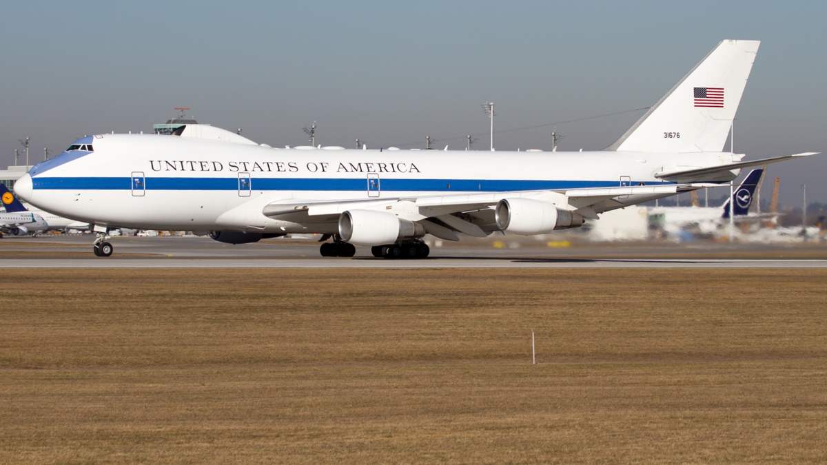 - Boeing 747’nin E-4B olarak malum hususi bir versiyonu olan uçağın beyaz ve mavi gövdesi nükleer bir savaşı havadan yönetmek için ihtiyaç duyulan her donanıma haiz.