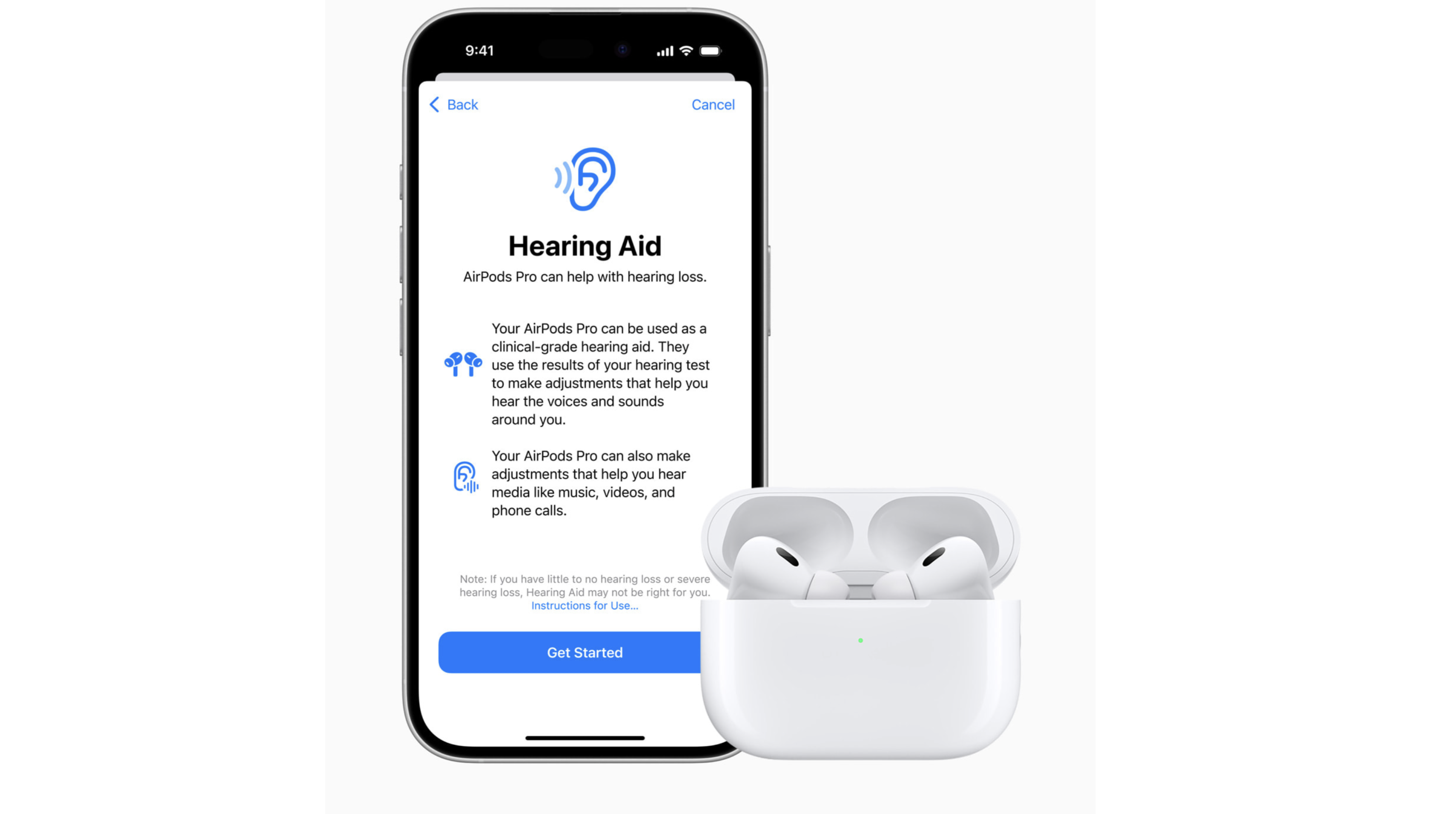 AirPods Pro 2’nin bununla beraber reçetesiz (OTC), klinik düzey işitme aleti olarak kullanılabildiğini söylemeliyim. Görünüşe bakılırsa orta düzeyde işitme kaybı olan biri olarak, işitme aletine ihtiyacım olacak.