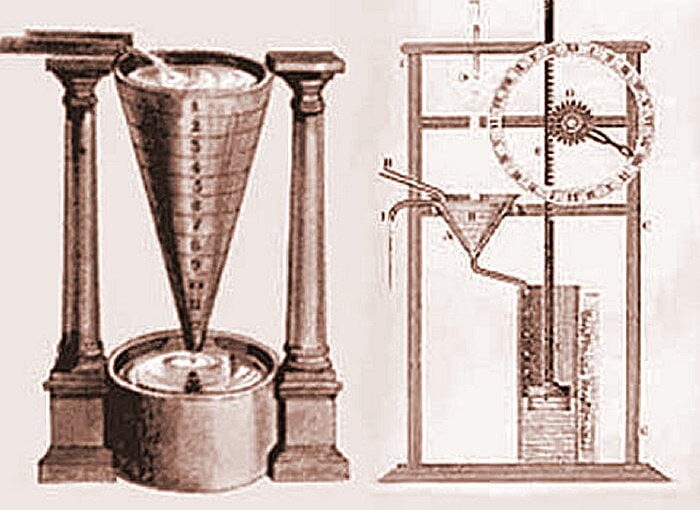 Su saati, zamanı seyretmek amacıyla buluş edildi. Ktesibios’un su saati, içine belirli bir ritimle su dolan bir depodan oluşuyordu. Depoya su doldukça içindeki duba yükseliyordu. Dubanın ucundaki iğne ise bir silindirin üstünde bu yükselmeyi işaretliyordu. Bu ilk alarm saatidir. Ek olarak su saatlerinin sesi bir kişiyi uyandırmak için kafi değildi. Açıkçası insanların vaktinde ayağa kalkabilmesi için daha etkili bir şeye gereksinim vardı.