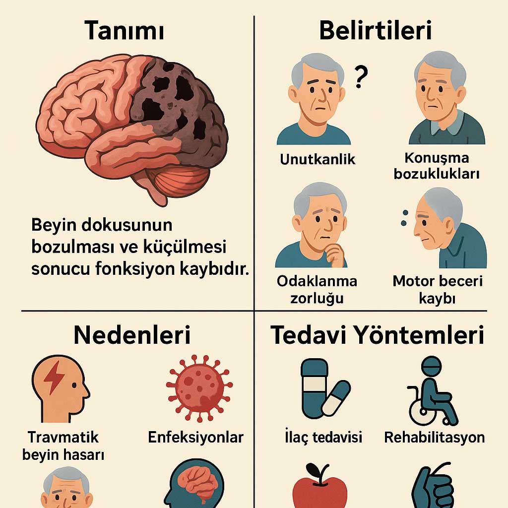 “Beyin çürümesi” tıbbi bir terim değildir, sadece halk içinde beyin dokusunun bozulması, küçülmesi yada işlevini yitirmesi durumlarını tanımlamak için kullanılır. Tıp dünyasında bu tablo çoğu zaman beyin atrofisi, dejeneratif beyin hastalıkları ya da nörolojik bozulmalar olarak adlandırılır.
