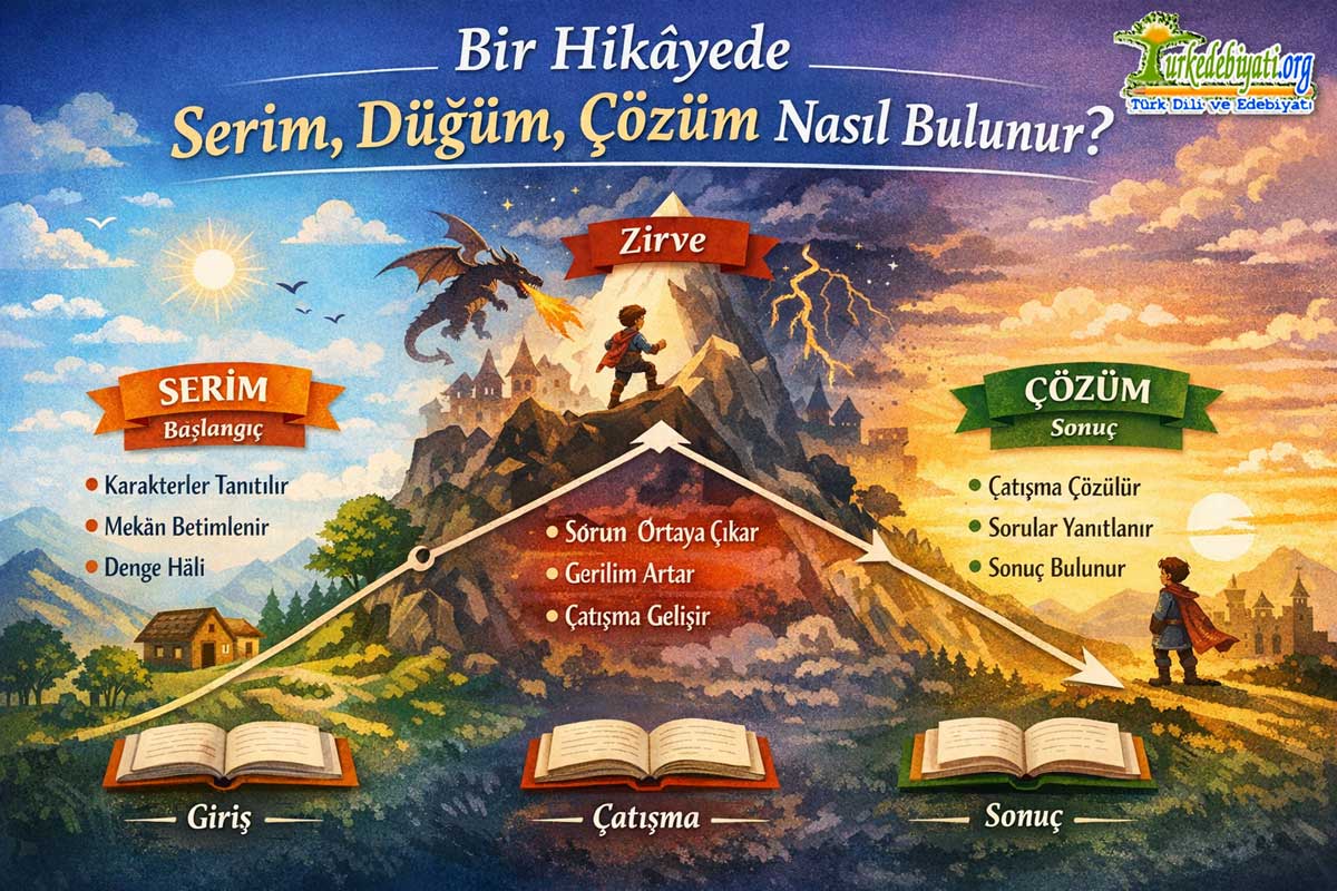 Bu yazıda bir hikâyede serim, düğüm, çözüm iyi mi bulunur sorusunu bilimsel niteliği olan, fakat yormayan bir üslupla ele alacağız. Ilkin temel tanımları netleştireceğiz, peşinden bu bölümlerin metin içinde hangi işaretlerle anlaşılabileceğini açıklayacağız. Sonrasında örnekler üstünden ilerleyip uygulamada dikkat edilmesi ihtiyaç duyulan noktalara değineceğiz. Amaç yalnızca kavramları tanıtmak değil; okura, bir hikâyeyi çözümleme becerisi kazandırmaktır.