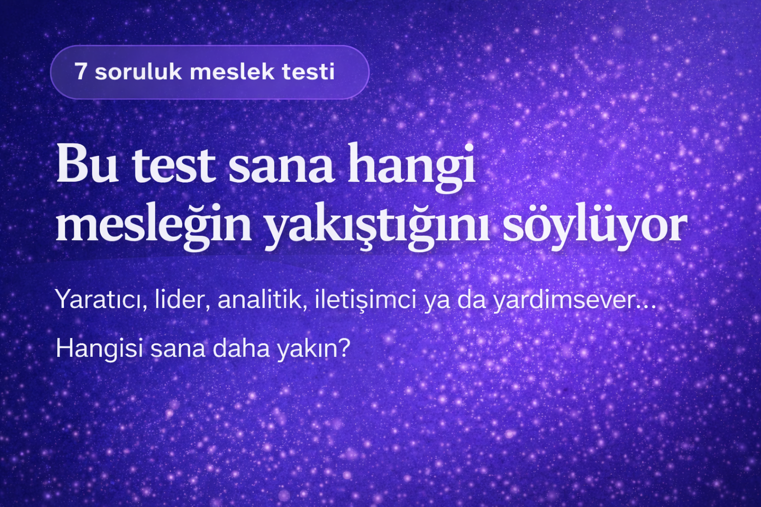 Her insanoğlunun doğasında öne çıkan bir yön vardır. Kimisi üretmeyi, kimisi yönetmeyi, kimisi insanlarla kontakt oluşturmayı, kimisi ise bilgileri çözmeyi sever. Bu 7 soruluk testte vereceğin cevaplara bakılırsa sana en fazlaca yakışan mesleği keşfedeceksin.
