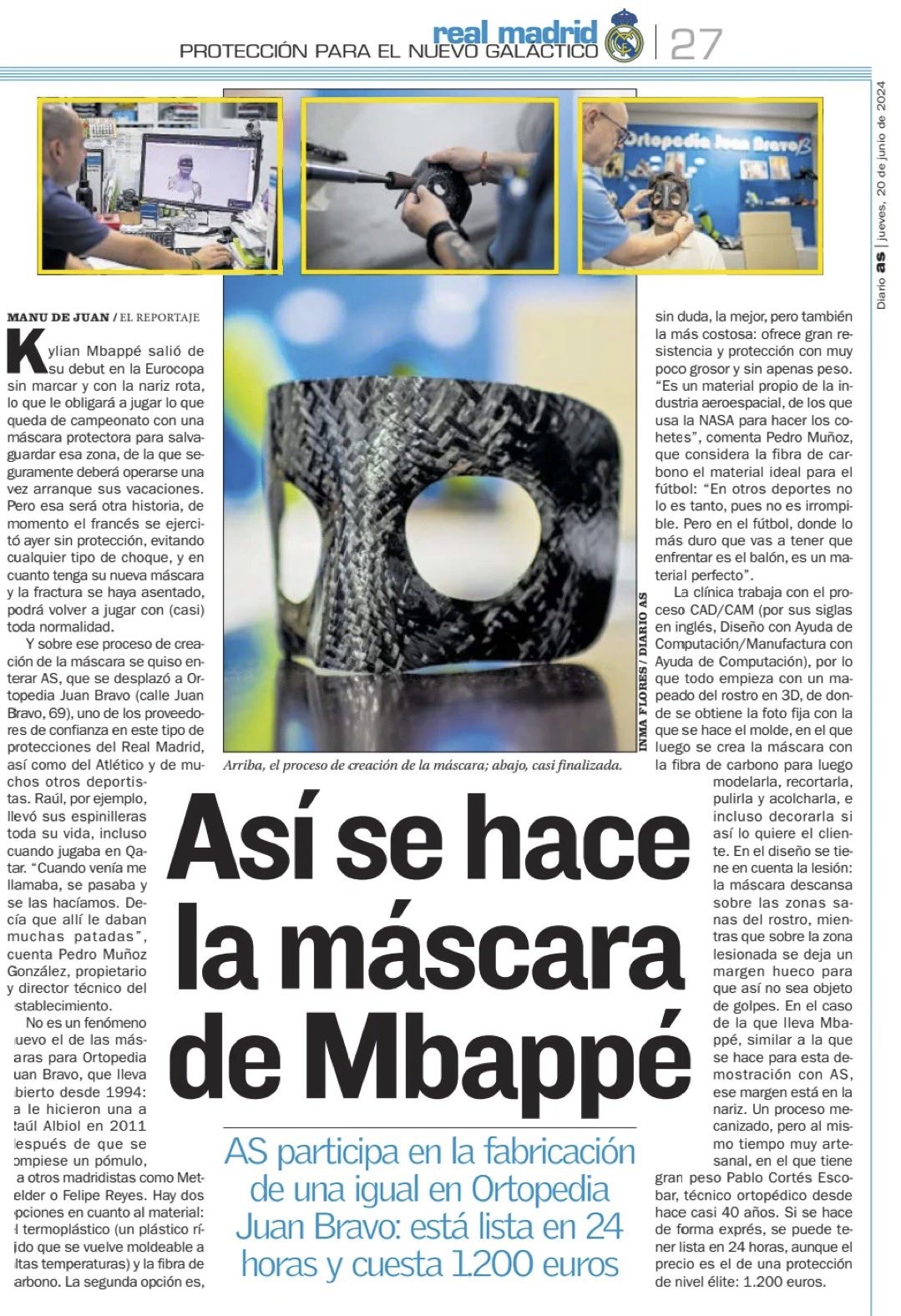 Peki bu hususi maske iyi mi bir maske? Ne kadar sürede hazırlanıyor? İspanyol AS gazetesinin haberine bakılırsa Mbappe için hazırlanan maske de bu işin standardına uygun olacak. Gazetenin Madrid’deki bir ortopedi kliniğini ziyaret ederek tüm süreci takip edip hazırladığı haberine bakılırsa NASA’nın roket yapımında da kullandığı türden, havacılık piyasasına özgü karbonfiber malzemeden üretilen maskenin fiyatı 1200 Euro’dan başlıyor. Söz mevzusu maske 24 saat içinde hazır olabiliyor.