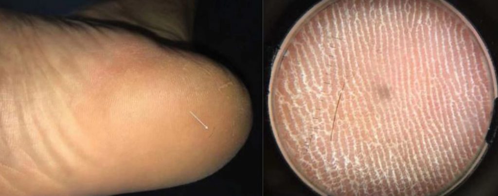 Doktorlar cımbız kullanarak 10 milimetre uzunluğundaki bu kılı yerinden çιkardılar. Adama kütanöz pili migrans (cutaneous pili migrans-CPM) teşhisi konuldu; bu, bir kıl gövdesi veya kıl p∂rç∂sının cilt yüzeyine y∂pıştıktan sonra zamanla gömülü hale geldiği nadir gerçekleşen bir durumdur.