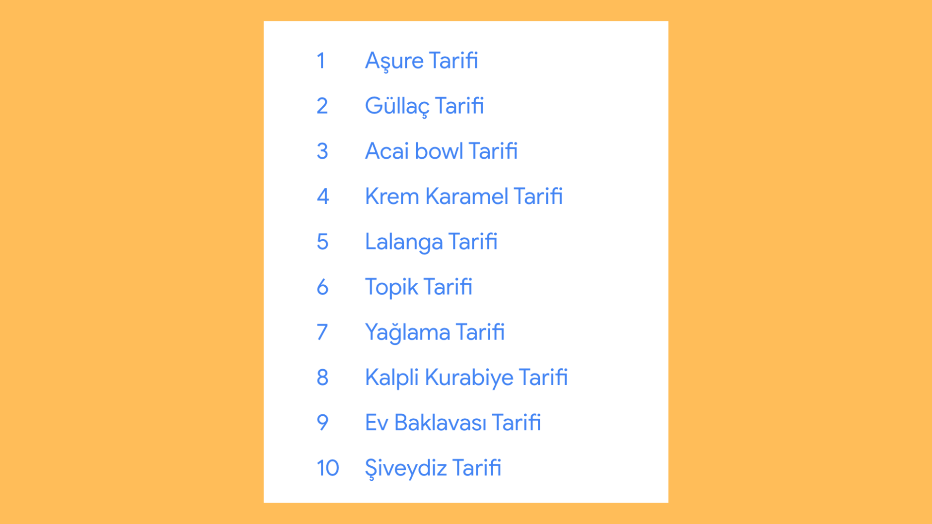 Evet, çok açık ki Ramazan’da ve aşure döneminde tanım aramışız. Sadece en oldukça Google’ladığımız on tariften beşinin tatlı olması dikkat çekiyor.