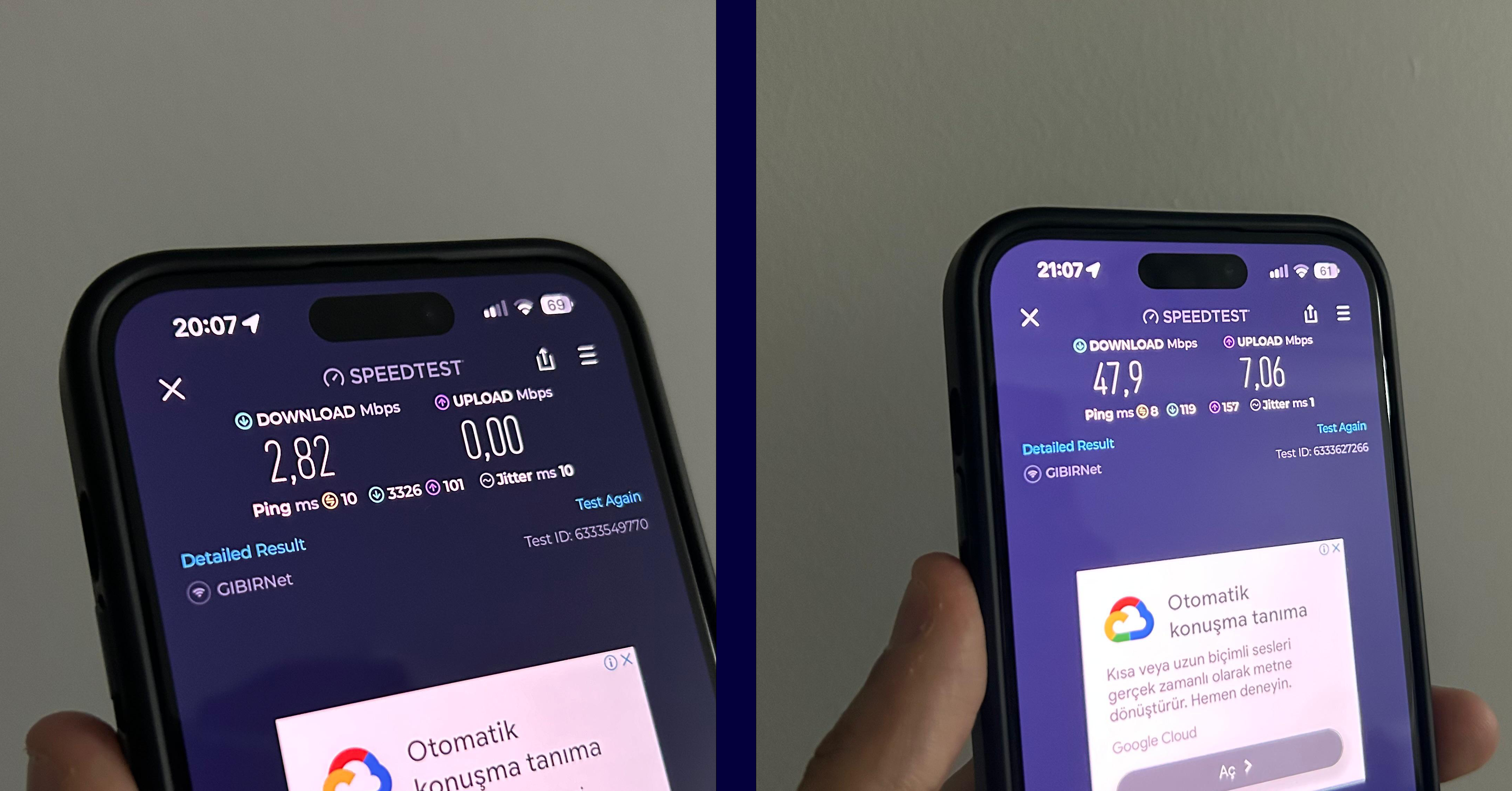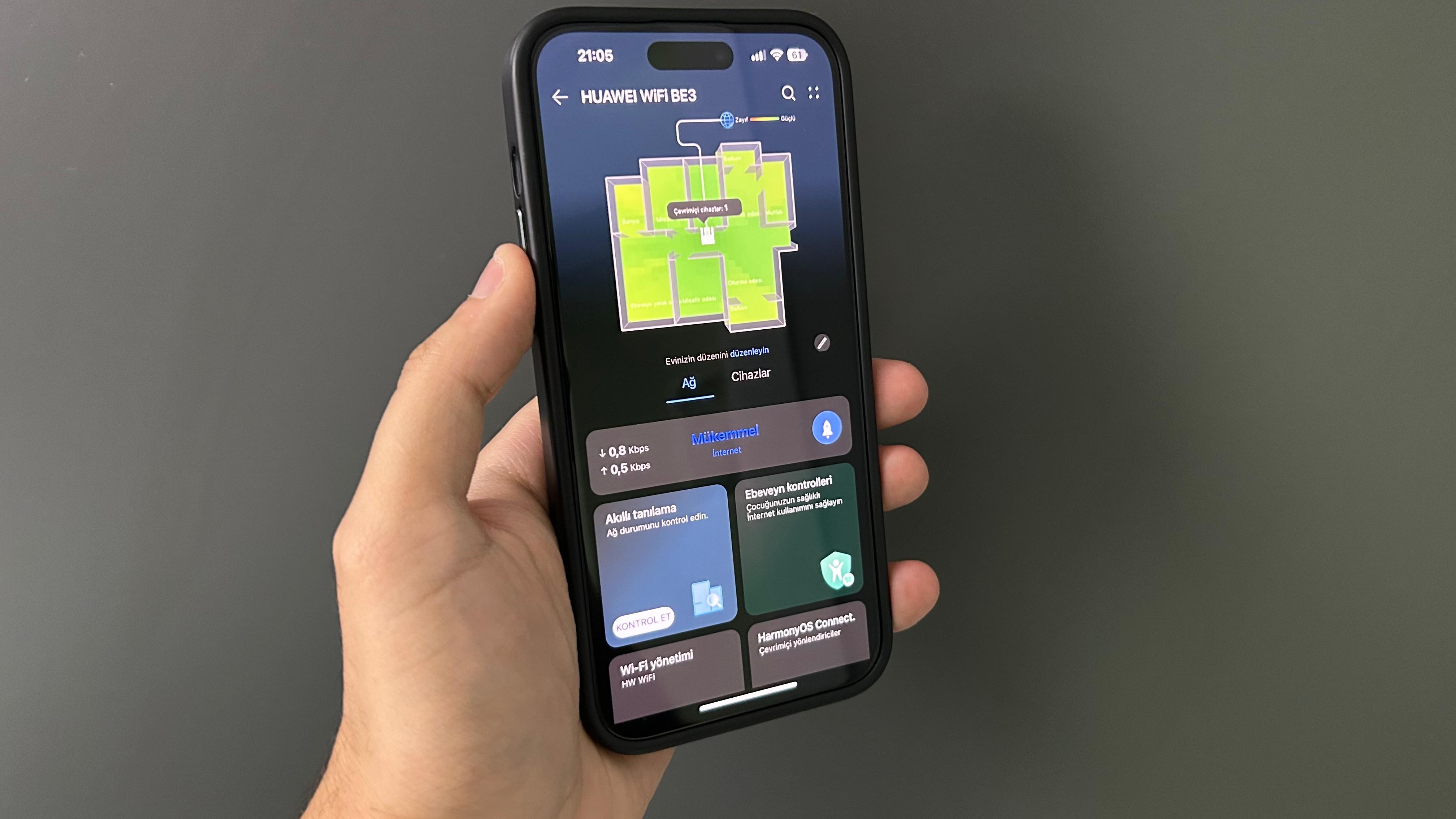 Çift bant desteğine haiz olan Huawei WiFi BE3 modeli, dört anteni ile iyi bir performansa haiz. Ben normalde evde MESH sistem kullanıyorum. Aleti kontrol ederken bu sistemi iptal ettim ve bağlantının testini gerçekleştirdim. Normalde modemim arka odada içeriyor. Router’ı ise evin ortasına konumlandırdım. Bu sayede uçtan uca her yerde aynı hızı yakaladığımı söyleyebilirim. Normalde arka odada, şu demek oluyor ki modemin olduğu yerde maksimum hızı alabiliyorum. Kısaca yaptığım testte 105 Mbps’ye kadar çıkabiliyor. Eğer arada başka bir aygıt kullanmazsam salonda, şu demek oluyor ki evin öteki ucunda sadece 7-8 Mbps hızlarını alabiliyordum. Huawei WiFi BE3 modeli ile yaptığım testlerde en uzak uçta bile 98-100 Mbps hızlarına ulaşabildim. Kısaca evde MESH sisteminiz yoksa bile bu router ile hız sorununu uçtan uca çözebileceğiniz bir sisteme haiz oluyorsunuz.