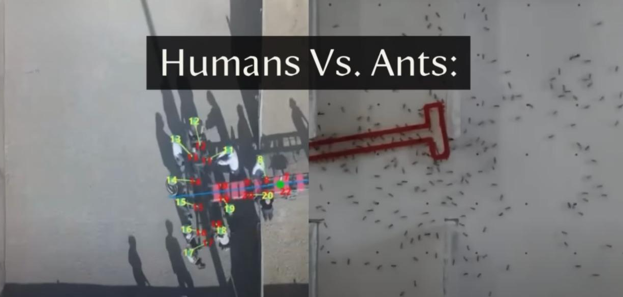 • Araştırmacılar, insanların ve “deli karıncalar” olarak malum Paratrechina longicornis türünün, karmaşık bir labirentte büyük bir nesneyi taşıma görevini tek başlarına ve grup halinde iyi mi yerine getirdiğini karşılaştırdı.