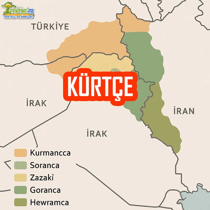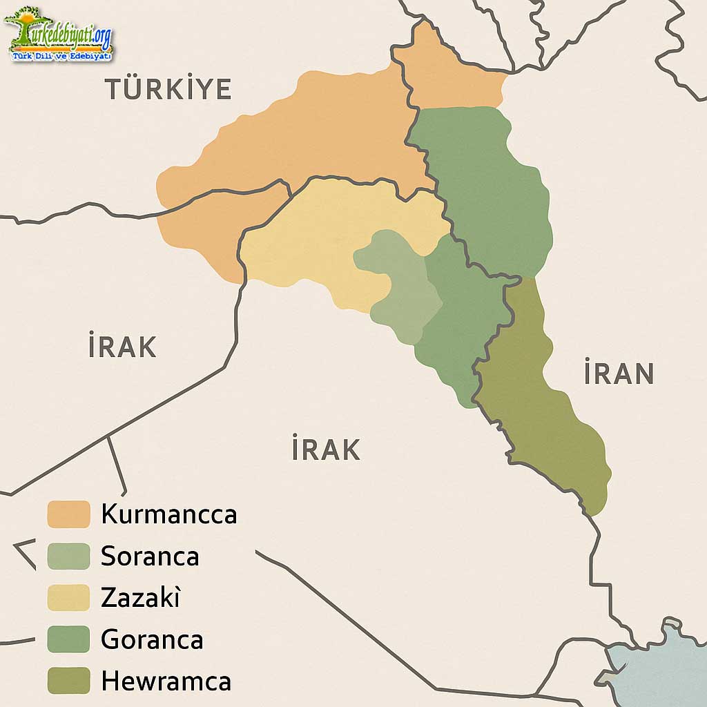 - Lehçeler: Kurmancca (Kurmancî), Soranca, Zazakî (Dimilkî), Goranca, Hewramca.