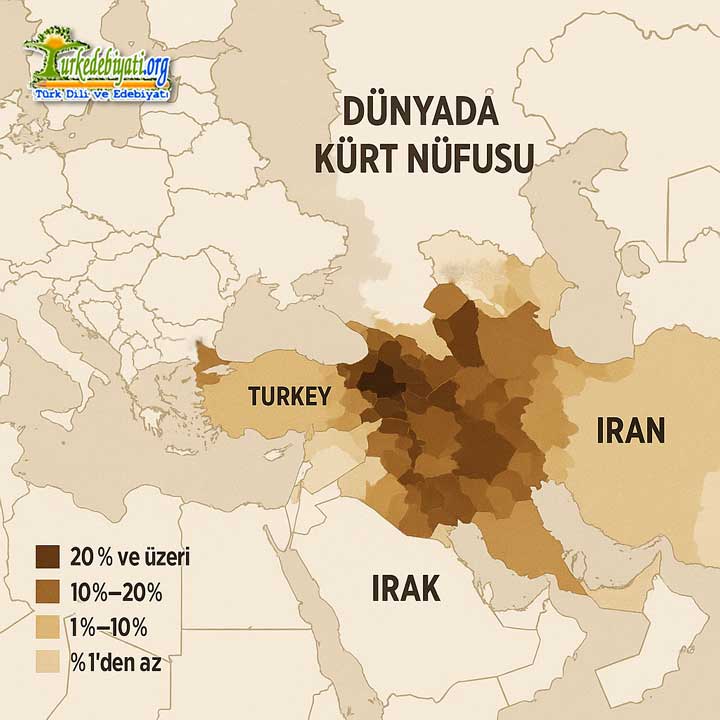 - Kürtler, ülkelere nazaran değişik yoğunluklarda dağılmış durumda; Türkiye, İran, Irak ve Suriye, nüfusun büyük kısmını barındırıyor.