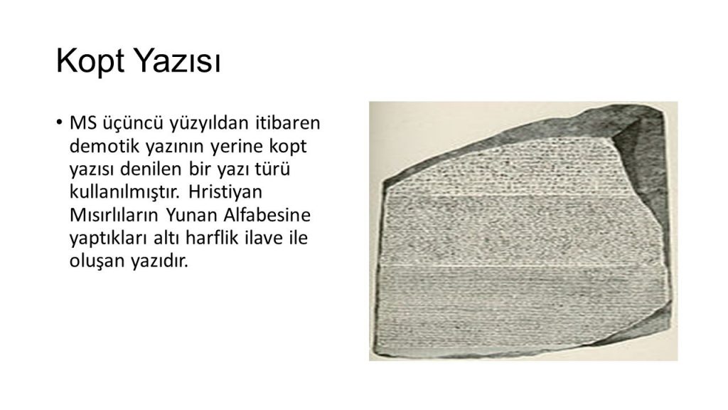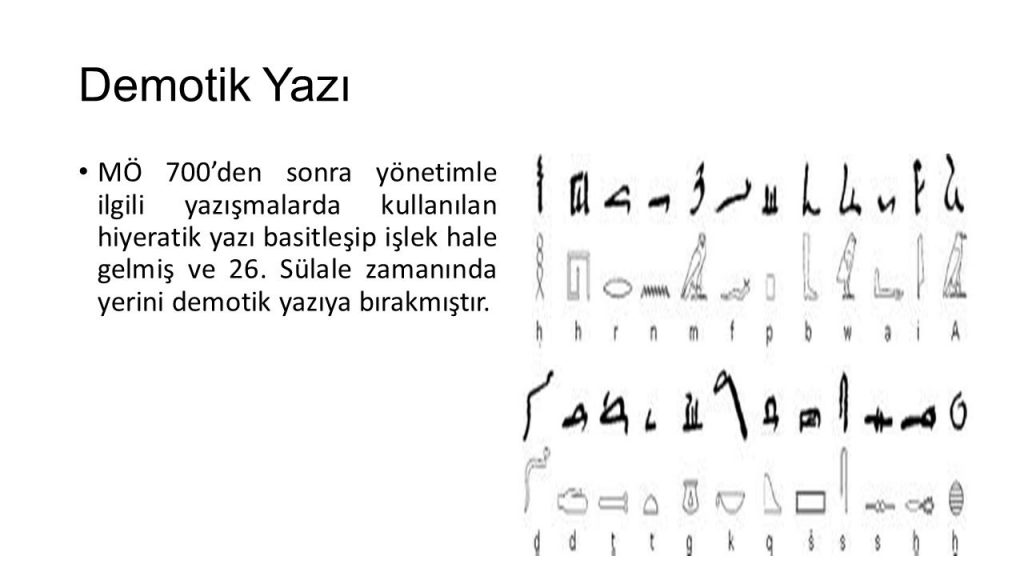 İlk olarak Mısır’da yazıyı ele alalım: Antik Mısır da M.Ö 3000 yılından sonra MEZOPOTAMYA çivi yazısından esinlenerek hiyeroglif yazısını icad etttiler. Mısır da küçük bir kasaba olan Apydos da bulunan oyma işlerinden yola çıkarak resimli yazının ilk mısır da kullanıldıgı iddia edilir. Mısır hiyeroglifleri 1822 yılında Eski Mısır bilimci ve Dilbilimci Jean François -Champolion çözmüştür. Mısırlılar yazıyı Mezopotamya’dan öğrenmişlerse de kendi üsluplarını geliştirip Antik Mısır resimlemeyi (piktogram) taş, fildişi, ahşap,üzerine kazıyarak başlamışlardır. Mısır da ayrıca 1.Hiyaretik, 2.Demotik, 3.Kopt yazı türleri de vardır. Mısır alfabesi kolay çözülebilir bir yazıydı,bunun nedeni ise yıllarca aslına bağlı yazılı olması idi.  1.Hiyaretik Yazı: Kitap yazısı dedikleri yazıdır ve kutsal sayılmıştır. Kil kaplara ve papirüslere yazılması Orta Krallık (M. Ö2040-1640) döneminde daha sık kulanılmıştır.Hukuk ve dini metinlerde kullanılır. M.Ö 200’e kadar kullanılmıştır.  2.Demotik Yazı: Kursiv denilen Halk yazısıdır. M.Ö 750 de Eski Helenlerden esinlenerek ortaya çıkan yazı türüdür.  3.Kop Yazı: Geç devir mısır diline denir.7.demotik işaret ve helen dilindedir.  “Ani’nin Özdeyişleri “olarak Papirüs yazının artışı “Ölüler Kitabı” yani mumyalamayla birlikte gömülen yazılar sayesin de artış göstermiştir. Kahire Müzesi’nde ki papurus de Ani’nin Özdeyişleri adın da Mısır davranış kuralarını anlatan bir metin bulunmaktadır.Bu metin şu şekil de yazılmıştır. Günümüz de bizlere de ders olması temennisiyle aktaralım.