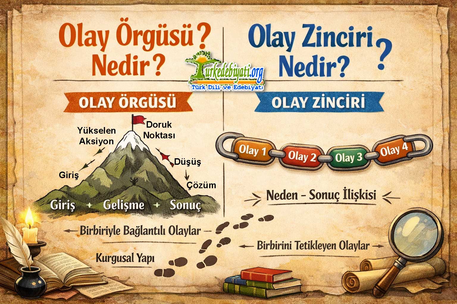 Bu yazıda vaka örgüsü nedir, vaka zinciri nedir, iki kavram arasındaki farklar nedir ve metin çözümlemesinde iyi mi ayırt edilir sorularını açıklayıcı halde ele alacağız. Tanımları açık halde verecek, örneklerle ilerleyecek ve mevzunun eğitim bağlamındaki önemine de değineceğiz. Amaç, kavramları ezberletmek değil; onları hakikaten anlaşılır hâle getirmektir.
