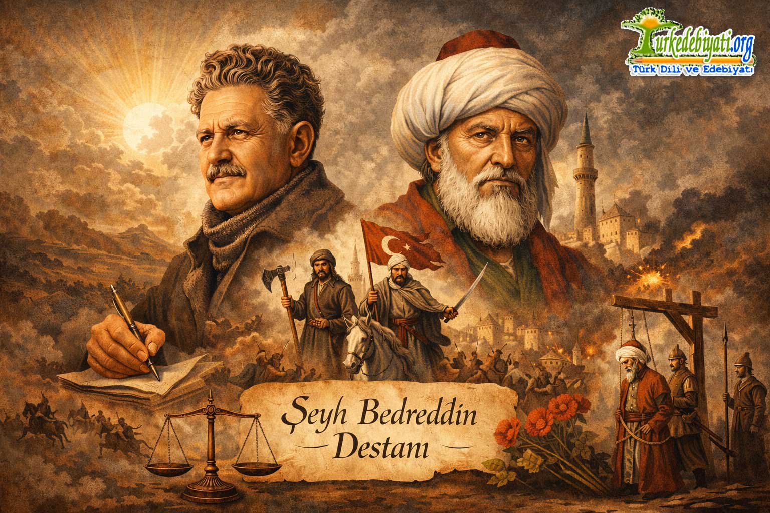 - Kahramanlara atfedilen değerler: Şeyh Bedreddin bilge, yol gösterici ve halkın önderi olarak kurgulanır. Börklüce Mustafa ve Torlak Kemal ise alp/alperen tipinde, yürekli ve fedakâr savaşçılardır. Bu kahramanlar baskı ve zulme karşı duruşlarıyla yüceltilir.
