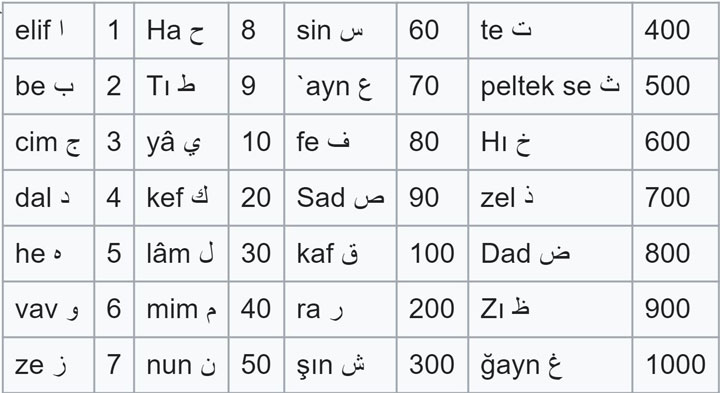 Arap Alfabesinde her bir harfin sayısal bir kıymeti vardır. Harflerin sayısal değerleri gözetilerek harp, zelzele, yenilgi şeklinde mühim vakalar; mühim binaların yapıldığı tarihler; şehzade, padişah şeklinde mühim insanların doğum ve ölüm tarihleri şiirsel ve bir tek yılı verecek şekilde yazılmasıdır. Rakamsal değerler aşağıda verilen tablodaki gibidir.