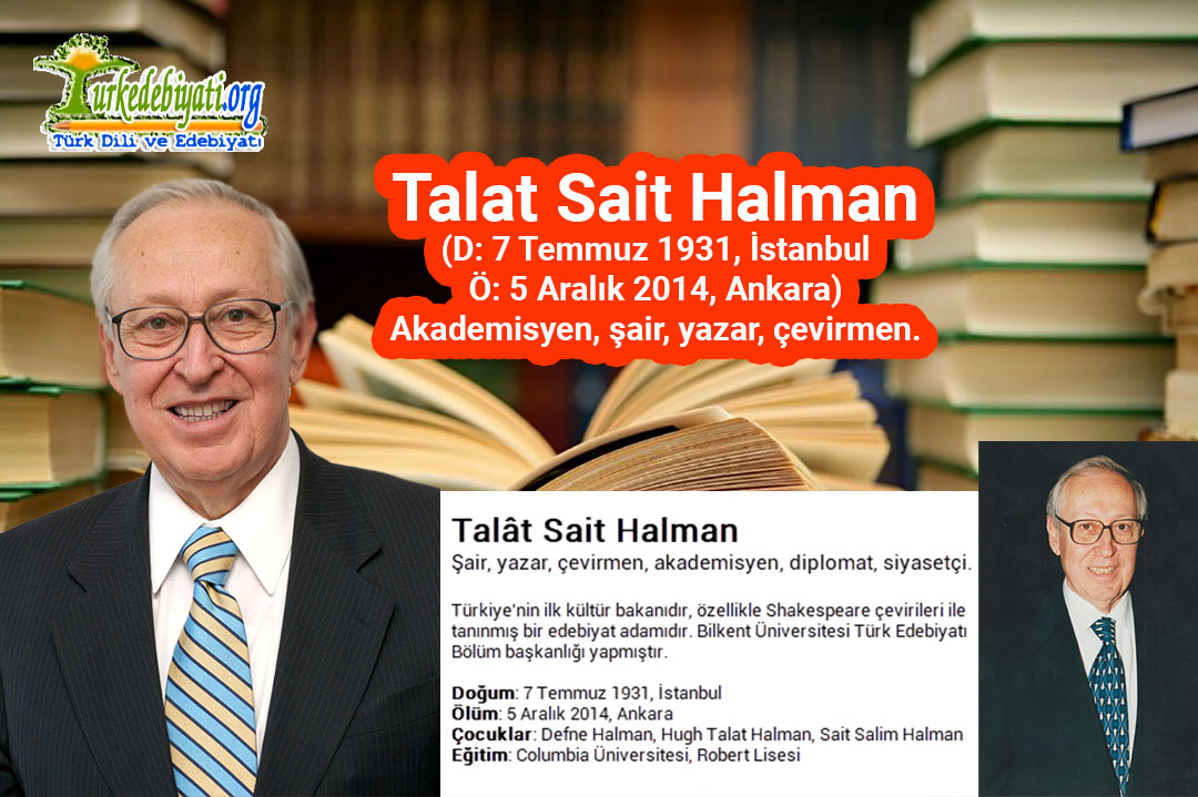 Prof. Dr. Talât Sait Halman, (D: 7 Temmuz 1931, İstanbul – Ö: 5 Aralık 2014, Ankara) Akademisyen, ozan, yazar, çevirmen.
