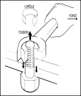 Yazının başından beri hep otomobillerdeki tork kavramıyla ilgili açıklamalar yaptım. Aslında bu kavram fizikte dönme momenti olarak bilinen kuvvet x kuvvet kolu formulünden başka birşey değildir. Yandaki resimde anahtarla somunun sıkılması gösterilmekte. Burada elle uygulanan kuvvet vida ile somun arasında vidaya paralel yönde bir gerilim ve dairesel yönde moment oluşturmakta. İşte bu momente tork denir. Anahtarın sapı ne kadar uzun olur ve ne kadar geriden tutulabilirse, somun o kadar kolay dönecektir. Otomobilin tekerleklerinde olan da bunu aynısıdır. Tekerleğin çapı küçültülürse tork yükselir ve daha ani tepki veren daha esnek bir otomobile sahip olunabilir. Tabi bu durumda maksimum sürat düşecektir. Bir yerden kazanılırken bir yerden fire vermek gerekir, bu işin doğasında olan birşeydir.