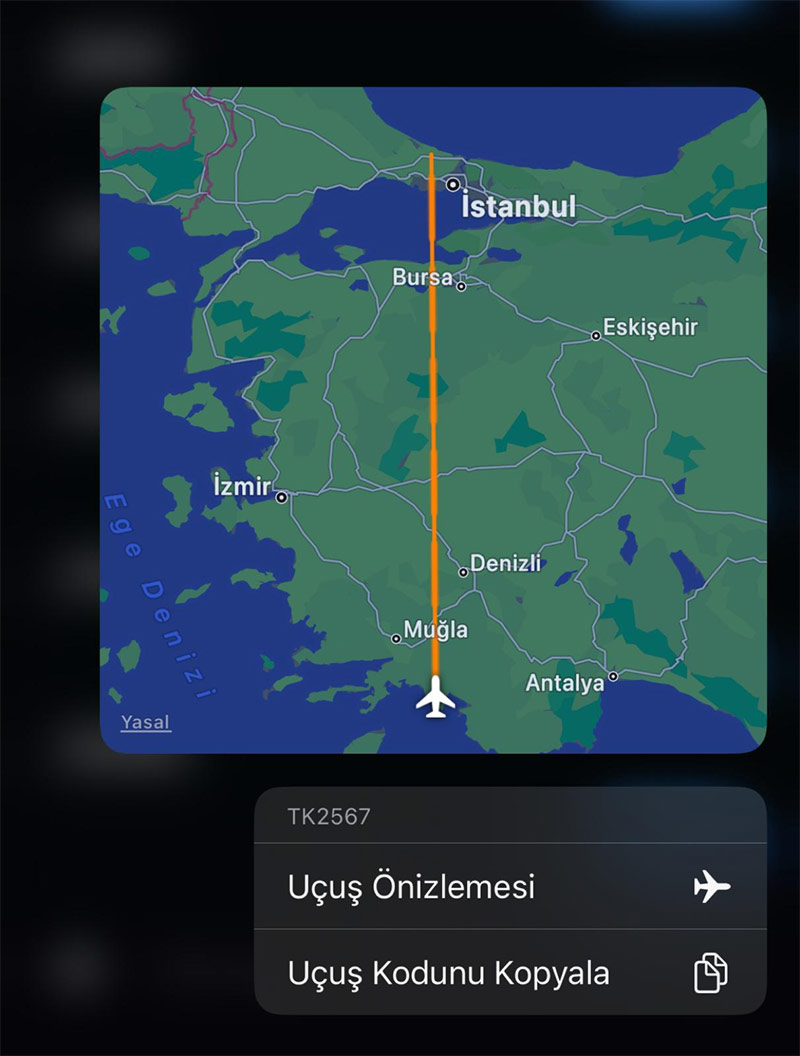 Uçuş numaranızı kendinize kısa bildiri olarak göndermeniz kafiGönderdiğiniz kısa bildiri, tıklanabilir bir bağlantı olarak belirecek, üstüne dokunun ve “Uçuşu Önizlemesi” seçeneğini seçin.