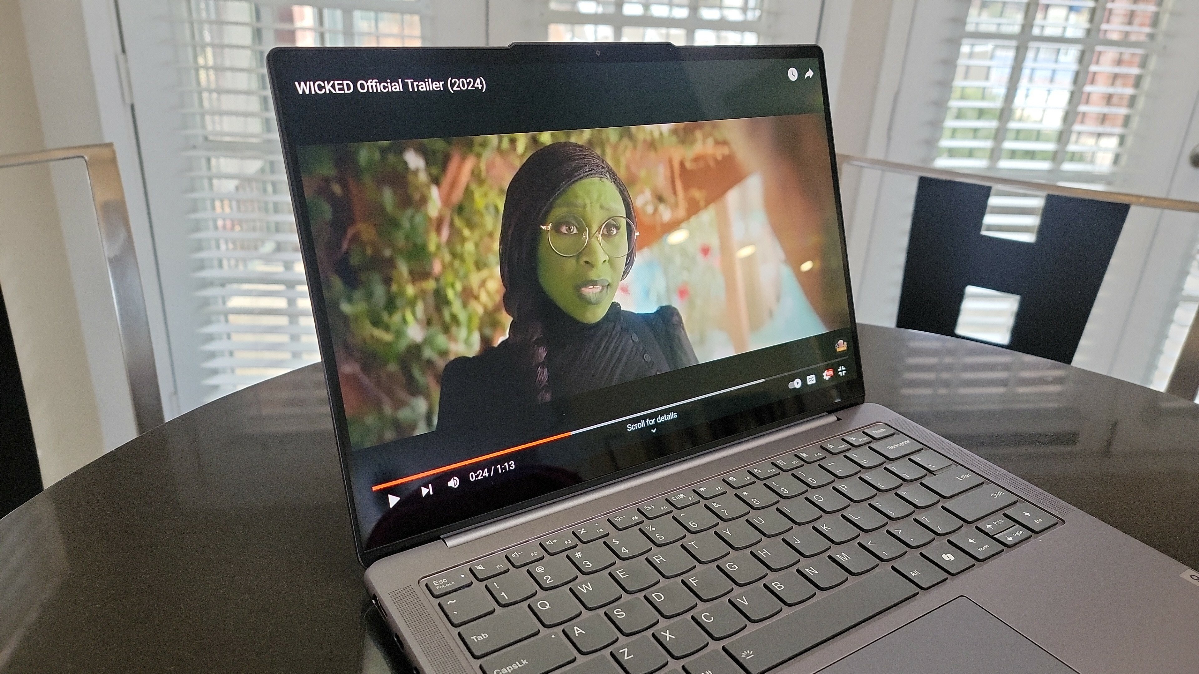 Fotoğraf: Sarah Chaney / MashableSlim 7 14, iki tane Dolby Atmos sertifikalı hoparlörle haiz. Hoparlörlerin laptopun üstünde yer alması da ek bir güç sağlıyor. Ses standardını kontrol etmek için Ariana Grande’nin “Supernatural” şarkısını Spotify’dan oynattık.