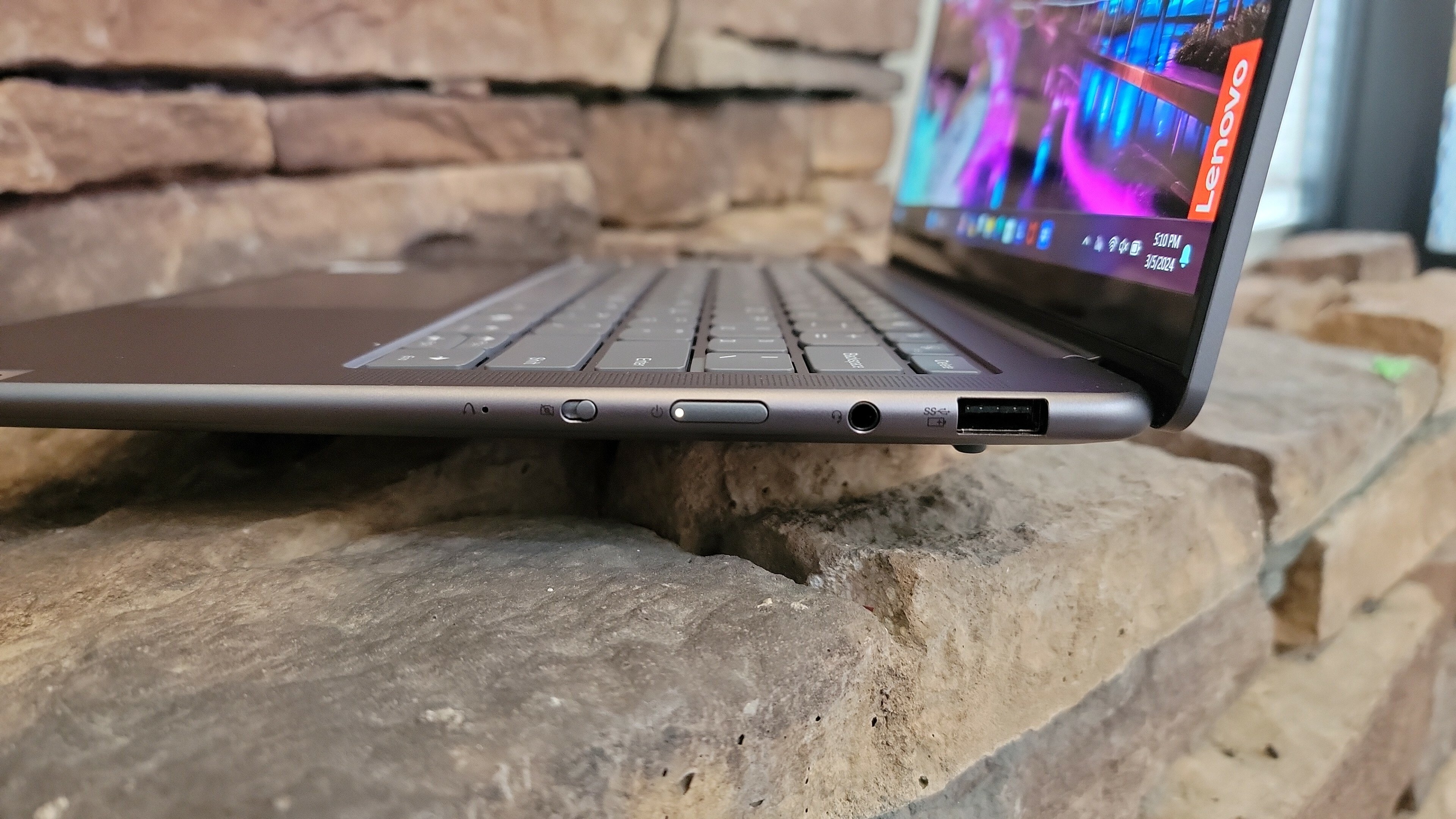 Fotoğraf: Sarah Chaney / MashableKeşke Lenovo, Slim 7 14’ün USB-C yuvalarından birini şarj etmek kolay olsun diye sağa koysaymış. Bu sebeple cihazın şarj kablosu bir çok laptoptan daha kısa.