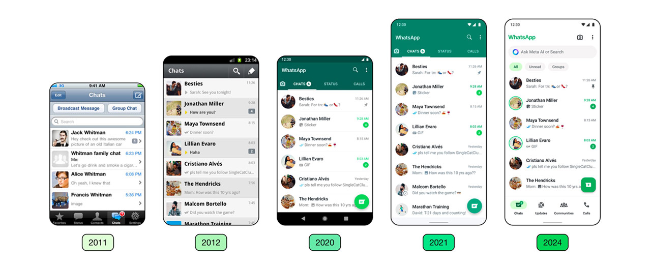 En popüler mesajlaşma programı olan WhatsApp, tasarımında seneler süresince değişik ayarlamalar yapmış oldu, son olarak büyük tasarım değişikliği ise 2021 yılındaydı. Şirket şimdi tekrardan tasarım değişikliğine gidiyor ve bu değişikliklerin aşamalar hâlinde kullanıcılara sunulacağı belirtiliyor. Kimi yenilemeler iOS ve Android uygulamasına şimdiden sunuldu bile.