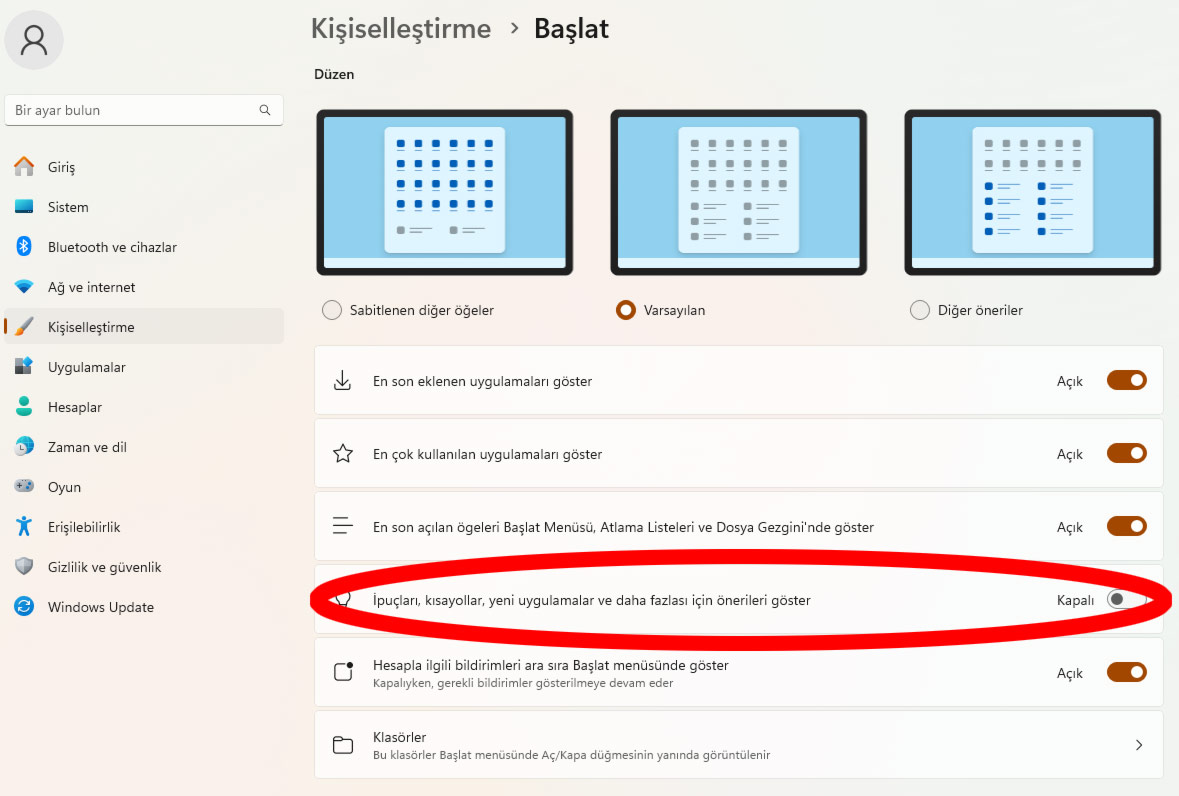Windows 11 Başlat Menüsü içindeki reklam iyi mi kapatılır?