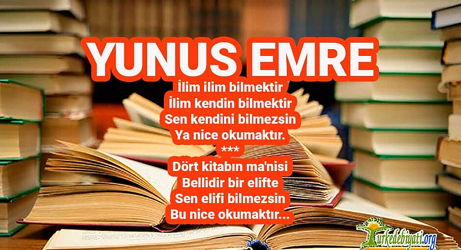 Yunus Emre, Türk düşünüş edebiyatının en büyük şairlerinden biridir. Onun uzun, devamlı hayat tecrübeleri varlık, yokluk, aşk ve Allah hakkında hummalı zihin yoruşları vardır. Yoksulu zenginden, kâfiri Müslümandan ayırmaksızın, Allah’ın eseri olan bütün insanlara karşı, onlarda Tanrı’dan yankılar bulan, engin bir sevgiyle doludur. Onun, vatan edindiği topraklar üzerinde asıl vatanından bir ömür boyu uzak kalmış bir insan üzüntüsüyle duyduğu gariplikler, kimsesizlikler vardır, özlediği vatan, Tanrı diyarıdır ve Yunus durmaksızın iç ve kafa hareketleriyle olgunlaşıp derinleşen, rint ve coşkun bir derviş hayatını, hep bu anavatana doğru, maddî, manevî yürüyüşlerle geçirmiştir.